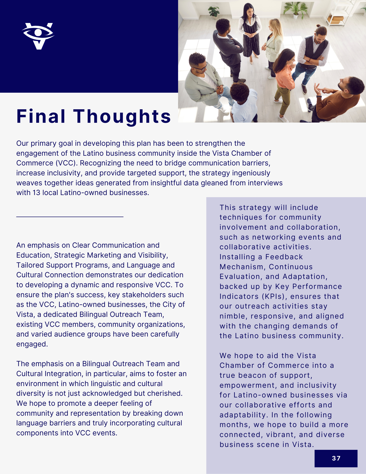 Collaborative Success: This project showcased the powerful synergy between academia and industry. By bridging the gap, we not only met but exceeded expectations, impacting the Vista Chamber of Commerce's outreach efforts.